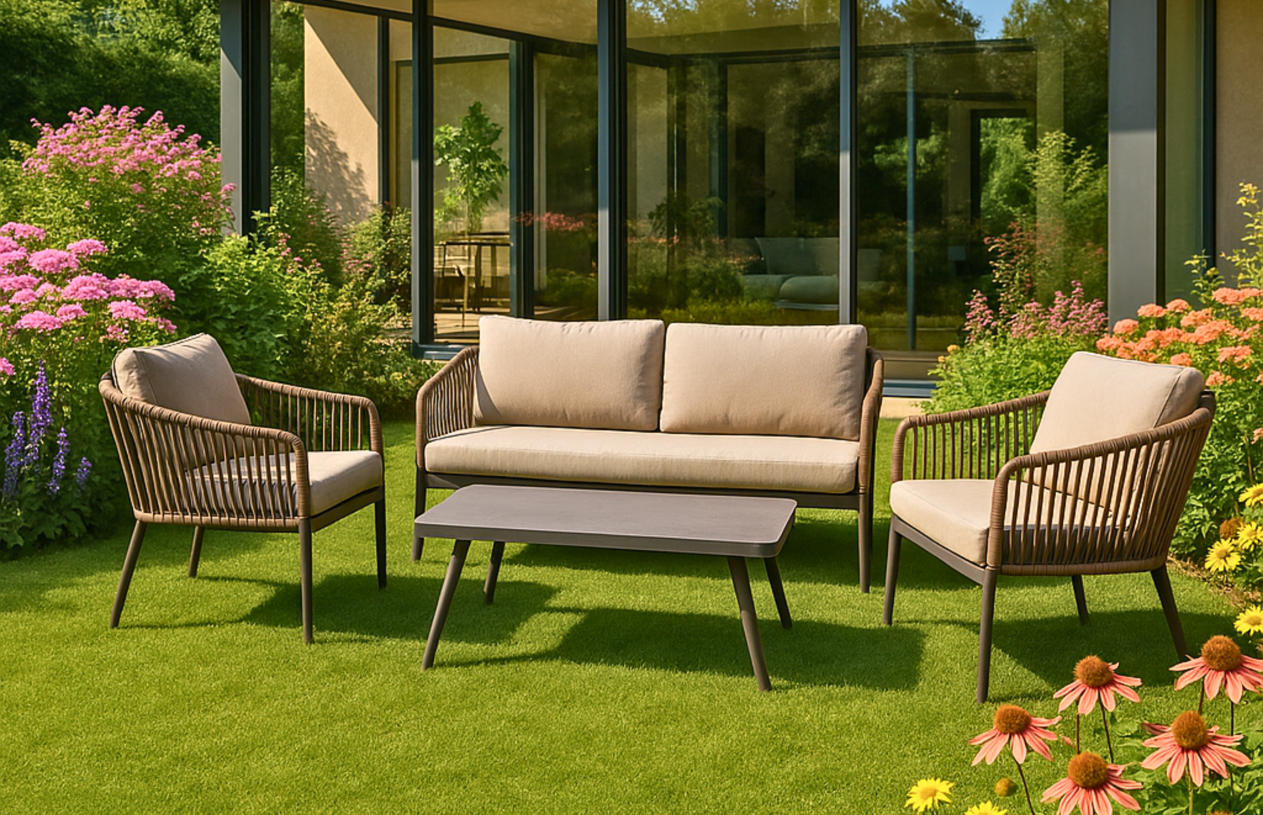 Salon de jardin « Solea » – Design stylé et confort maximal pour votre espace extérieur.