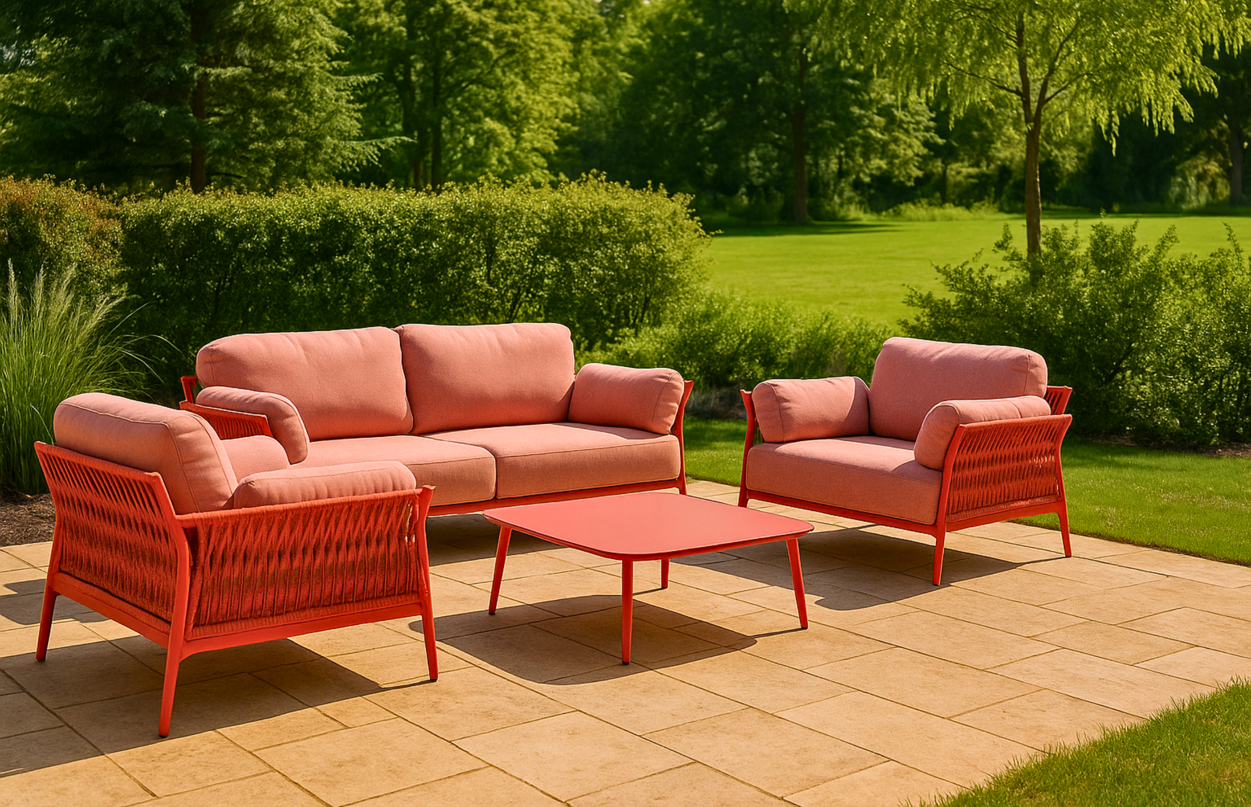Ein Outdoor-Tisch, der Komfort und Stil vereint.
